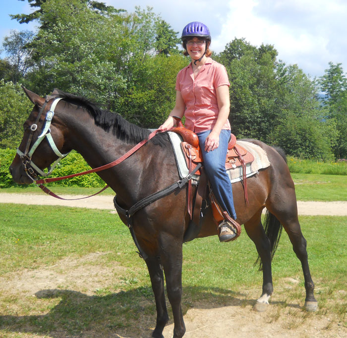 Mountain Top is prettily situated along a quiet road about 11 miles from Killington Ski Resort. The resort began as a turnip farm in the 1800s, and became a popular inn during the 1940s. President Eisenhower stayed here in 1955. With its lake and mountain views, year-round activities, relaxed atmosphere, and plush, comfortable accommodations, Mountain Top Inn & Resort is a spectacular place to stay in any season for any reason. This August, we were there for the horses. Mountain Top’s Equestrian Center offers one of the most comprehensive vacation-based horseback programs in the Northeast. The folks there can handle never-ever beginners (or once-in-a-blue-moon near-beginners like Doris and me) as well as expert riders and everyone in between. Mountain Top offers trail rides of different lengths, and also instruction in both English and Western riding, with advanced classes such as Jumping and Introduction to Cross Country Jumping.