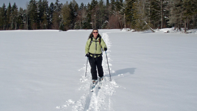 We had perfect weather and snow conditions for the ski trip we had planned but she made it clear that she was well prepared with other options if Mother Nature didn’t cooperate. That willingness to go with what the client and the weather dictate makes her a great resource for individuals, but especially for families looking for adventure. Lucie, I discovered, is the mother of two beautiful kids, and a former cross-country ski instructor at both The Balsams Wilderness (which will be closed for the winter of 2011/12 and reopening in summer 2012) in nearby Dixville Notch, N.H and at Gunstock Nordic Center in Gilford, N.H. She also has other guides who work with her throughout the year. As a young mother herself, she’s particularly attuned to the needs of families with young kids. She operates trips throughout New Hampshire, almost year ‘round. In the summer, she specializes in canoeing, hiking, and biking.